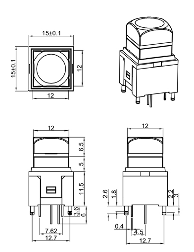 12X12MM矩阵带灯按钮开关,明水晶质感发光按键,明晰的手感,多种颜色LED灯可选择,可定制不同图案,尺寸多样化选择.